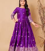 • Product Id : 4358519 • Package Details : 1 Gown • Type : Kids Gowns • Occasion : Party Wear • Work : Woven • Look : Designer • Sleeve : Half Sleeve • Neck Style : Boat Neck • Top Color : Purple • Top Fabric : Jacquard • Stitching : Stitched • Gender : Girl Payments [+]