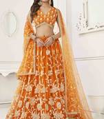Orange embroidered net semi stitched lehenga Choli Wedding & Party Wear Chaniya Choli For Women