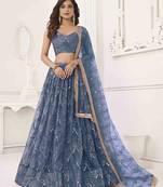 • Fabric : Net • Work : Embroidered • Color : Blue • Length : 2.5 Lehenga Details