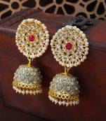 Traditional Meena Work Pearl Kundan Studded Jhumki Earring For Women