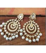 Gold Plated Traditional Chandbali Drop Kundan & Pearl Jewellery Earring For Women