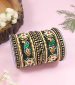 Gold Plated Traditional Silk Thread Handcrafted Meenakari Peacock Motif Bangles Chuda Bangle Set For Bridal