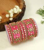 • Product Id : 4647635 • Package Details : 1 Set Of Bangles • Type : Bridal Bangles & Bracelets For Women • Occasion : Wedding • Look : Fashion • Jewellery Work : Stone • Color : Pink • Plating : Yellow Gold • Base Material : Alloy • Piercing : No Payments [+]