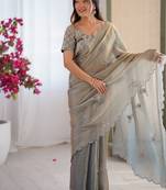 • Saree : Color- Grey / Fabric- Silk Blend • Blouse : Color- Grey / Fabric- Silk Blend Saree Details