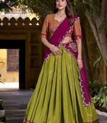 Pista South Style Kanchipuram Silk Lehenga Choli With Dupatta