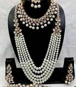 Luxury Pearl And Crystal Bridal Jewelry Set Traditional Indian Wedding Necklace Set With Earrings, Tikka, And Bracelet