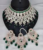 Royal Green Kundan & Pearl Bridal Jewelry Set Statement Choker Necklace Earrings & Maang Tikka Wedding & Festive Wear