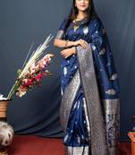 Women's Navy Blue Paithani Silk Zari Woven Saree With Blouse
