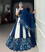 • Style : Circular Lehenga • Fabric : Cotton • Work : Plain • Color : White,Blue Blouse Details