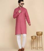• Product Id : 4645074 • Package Details : 1 Kurta / 1 Pajama • Type : Kurta Pajama • Work : Plain • Look : Traditional • Sleeve : Full Sleeve • Color : Pink • Bottom Color : White • Top Color : Pink • Bottom Style : Pyjama • Top Fabric : Blended Cotton • Fabric : Blended Cotton • Stitching : Stitched Payments [+]