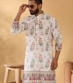 Elevate your ethnic style with this Men's Cotton Embroidered Sequin Chikan Floral Print Thread Work White Kurta. Crafted from premium cotton, this elegant kurta features intricate Chikan embroidery, delicate sequin accents, and floral print thread work, adding a touch of sophistication and charm. The breathable fabric ensures all-day comfort, making it perfect for festive occasions, cultural events, and celebrations. Pair it with a churidar or Pyjama for a timeless and refined look.