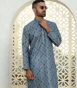 Floral Printed Blue Mandarin Collor Cotton Summer Kurta