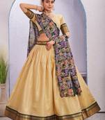• Style : Circular Lehenga • Fabric : Cotton Silk • Color : Cream • Work : Woven Blouse Details
