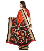Red & Multi Abstract Print Crepe Saree With Blouse Pics