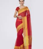 Red Woven Cotton Silk Saree With Blouse