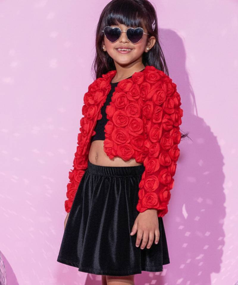 • Product Id : 4704768 • Package Details : 1 Jacket • Type : Girls Jackets • Work : Woven • Look : Fashion • Sleeve : Full Sleeve • Top Color : Red • Top Fabric : Georgette • Stitching : Stitched • Gender : Girl Payments [+]