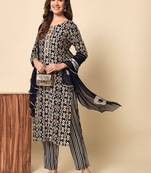 Navy Blue And Multicolor Ethnic Printed Kurta Set With Dupatta