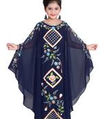 Navy Blue Georgette Hand Embroidered Zari Work Kids Kaftans Party Wear Dresses