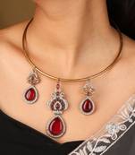 • Product Id : 4488361 • Package Details : 1 Necklace / 1 Pair Of Earrings • Type : Necklace Sets • Look : Traditional • Jewellery Work : Studded Jewellery • Color : Maroon • Plating : Antique Gold • Base Material : Brass Payments [+]