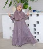 This grey kids burqa is perfect for everyday wear, easily paired with comfortable closed-toe shoes or sandals. Its straightforward design makes it versatile enough for different occasions that require modest attire, offering both style and ease for young girls.Specifications [-]