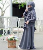 • Product Id : 4177024 • Package Details : 1 Abaya / 1 Jilbab / • Type : Kids Abaya • Occasion : Party Wear • Fabric : Crepe • Work : Plain • Look : Fashion • Sleeve : Full Sleeve • Neck Style : Round Neck • Color : Grey • Stitching : Stitched Payments [+]