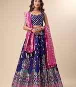 Dark Blue Woven Jacquard Semi Stitched Lehenga