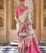 Weaving White Banarasi Silk Blend Contemporary Saree