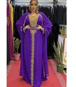 • Product Id : 4444465 • Package Details : 1 Kaftan • Type : Islamic Clothing • Occasion : Party Wear • Fabric : Georgette • Work : Embroidered • Type : Zari Work • Look : Designer • Sleeve : Full Sleeve • Neck Style : V Neck • Color : Purple • Stitching : Stitched Stitching [+]