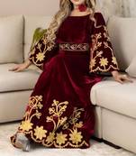 • Product Id : 4503869 • Package Details : 1 Kaftan • Type : Kaftans • Occasion : Party Wear • Fabric : Velvet • Work : Embroidered • Type : Aari Work • Look : Traditional • Sleeve : Full Sleeve • Neck Style : Boat Neck • Color : Maroon • Stitching : Stitched Stitching [+]