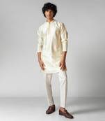 Ivory Embroidered Satin Kurta Set