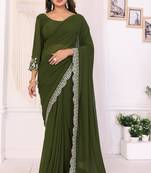 Ready To Wear Mehendi Embroidery Georgette Saree With Unstitched Blouse