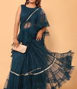 Ready To Wear Beautiful Bollywood Net Embroidery 3 Step Ruffle Lace Saree With Unstitched Heavy Embroidery Blouse