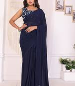 Ready To Wear Navy Blue Georgette Saree With Blouse Piece & Belt