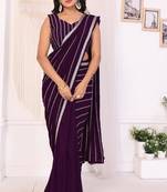 Ready To Wear Wine Georgette Embroidered Saree With Unstitched Blouse