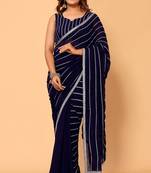 •Beautiful and stunning Navy blue georgette ready to wear fully stitched saree, This saree crafted with Thread embroidered which looks very pretty.,, • It comes with a unstitched blouse with fully embroidered work.,, • The length of this sari is 6 meters and blouse length is 1 meter.,, • We add ready pleats to the waist, so you don't have to worry about draping. It's perfect for anyone who wants to wear a saree without the fuss.,, • get one minute Pre-Draped saree for women When Getting Ready for Party, Occasssion Or Functions.,, • The ready to wear saree is designed to fit women of all sizes, The saree’s waist is adjustable upto 28 to 42 inch.