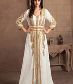 Gleaming Off White Party Wear Handmade Moroccan Style Kaftan