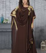 • Product Id : 4290640 • Package Details : 1 Kaftan • Type : Kaftans • Region : India • Fabric : Crepe • Work : Embroidered • Type : Stone Work • Look : Designer • Sleeve : Sleeveless • Neck Style : Sweetheart Neck • Color : Brown • Stitching : Stitched • Length : 58.0 Stitching [+]
