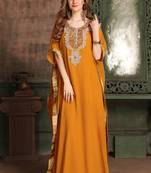 • Product Id : 4290177 • Package Details : 1 Kaftan • Type : Kaftans • Region : India • Fabric : Georgette • Work : Embroidered • Type : Stone Work • Look : Designer • Sleeve : Sleeveless • Neck Style : Round Neck • Color : Mustard • Stitching : Stitched • Length : 58.0 Stitching [+]