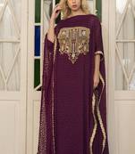• Product Id : 4286967 • Package Details : 1 Kaftan • Type : Kaftans • Region : India • Fabric : Crepe • Work : Embroidered • Type : Stone Work • Look : Designer • Sleeve : Sleeveless • Neck Style : Boat Neck • Color : Violet • Stitching : Stitched • Length : 58.0 Stitching [+]