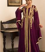 • Product Id : 4286969 • Package Details : 1 Kaftan • Type : Kaftans • Region : India • Fabric : Crepe • Work : Embroidered • Type : Resham Embroidery • Look : Designer • Sleeve : Full Sleeve • Neck Style : Round Neck • Color : Violet • Stitching : Stitched • Length : 58.0 Stitching [+]