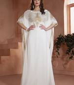 White Georgette Hand Beaded Designer Kaftan