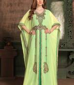 • Product Id : 4290193 • Package Details : 1 Kaftan • Type : Kaftans • Region : India • Fabric : Georgette • Work : Embroidered • Type : Stone Work • Look : Designer • Sleeve : Sleeveless • Neck Style : V Neck • Color : Parrot Green • Stitching : Stitched • Length : 58.0 Stitching [+]