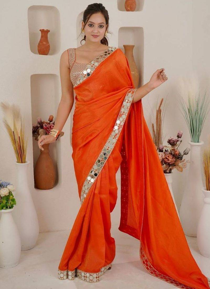 • Fabric Of : Art Silk • Color : Orange Blouse Details