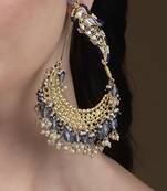 Enhance your look with these kundan bird earrings. Combined with blue stones these eaarings will elevate your style and aura.; Category Of Jewellery is Earring; Sub Category is Chand Bala; Ideal For Women; Color is Blue, Gold, White, Cream ; Gemstones Used - Kundan, Pearls, Natural Stones, Faux Blue Sapphire; Plating is Gold-Plated; Base Metal is Alloy; Other Material Used - Closure Stopper; Size is Freesize; Adjustable - No; Weight is 51 gms; Mesaurements - Length of Earring= 11 CM; Width of Earring =8 CM; Adjustable - No; Content 1 Pair Earring