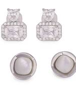 Pretty Squire Shape Studded Cz Silver Plated Combo Set Of 2 Stud Earring For Women