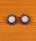 These blue sapphire earrings are handcrafted in silver & brass alloy with imitation blue colour cz stones & american diamonds of very fine quality. These simple and real looking earrings are plated with high quality gold rhodium. The earrings are very light in weight and can be used for daily and office wear.