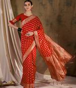 • Saree : Color- Red / Fabric- Art Silk • Blouse : Color- Red / Fabric- Banarasi Silk Saree Details