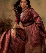 Maroon Color Weaving Work Banarasi Silk Blend Saree With Blouse