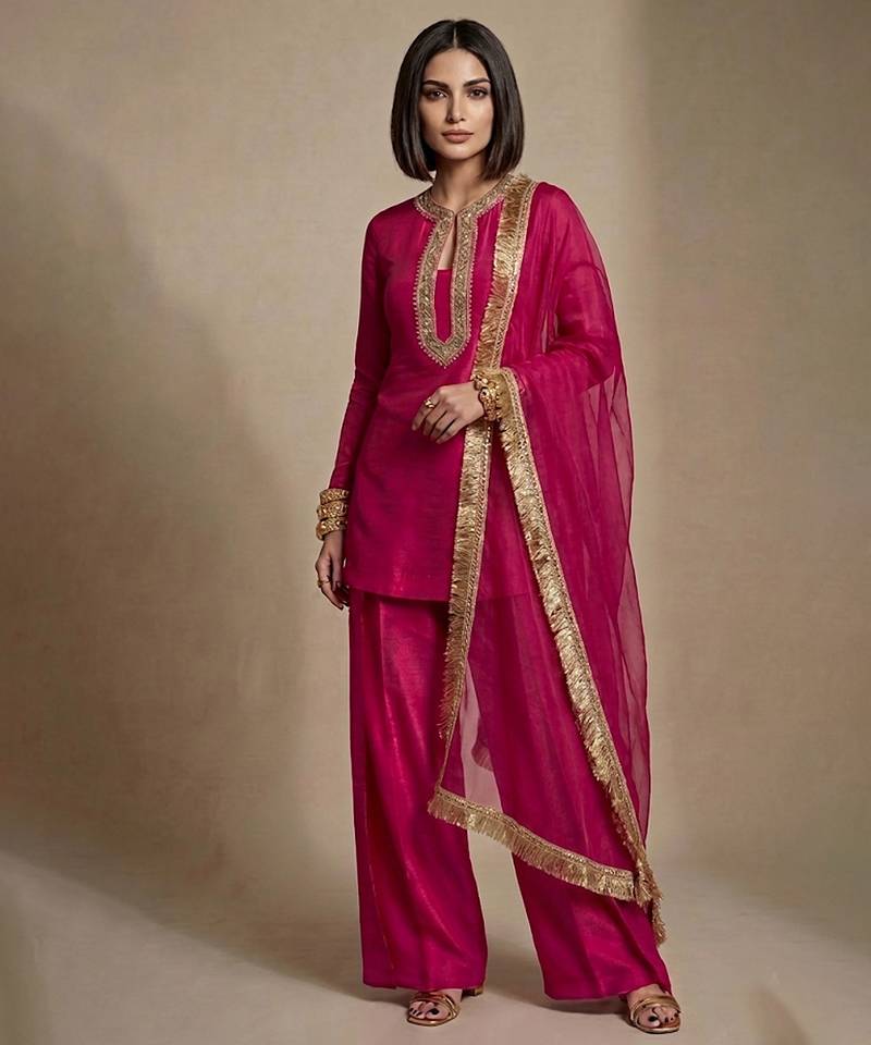 Components: 1 Kurta :: 1 Pant :: 1 Dupatta• Product Id : 4742485 • Package Details : 1 Kurta / 1 Pant / 1 Dupatta • Type : Plus Size Kurtis • Work : Embroidered • Type : Gota Patti • Look : Traditional • Sleeve : Full Sleeve • Fabric : Raw Silk • Color : Pink • Stitching : Stitched • Length : 35.0 General - Color and Texture may have slight variation. This happens because of photography.