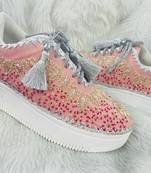 Light Pink Suede Threads, Beads & Nakshi Work Sneakers
